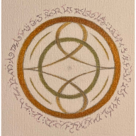 Wat mij meteen raakt, is de cirkel. Die voelt als bescherming, als een veld. Alsof het zegt: hierbinnen is het veilig. De warme, aardse rand doet me denken aan hout en handwerk, precies wat ook in mijn stokken zit. Het is geen strakke lijn, maar een rand die draagt en beschermt.
