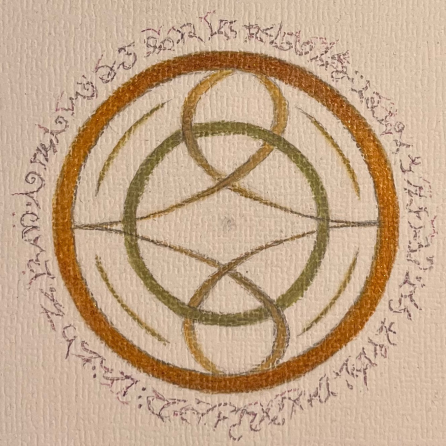 Buiten deze ring heeft Anne lichttaal geschreven. Voor mij voelt dat als een zachte bewaking van de binnenkant van de cirkel, als intenties die niet gelezen hoeven te worden met het hoofd, maar gevoeld mogen worden.