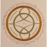 Aan de binnenkant van de cirkel gebeurt voor mij het echte werk. De vervlochten vormen in het midden laten een eindeloze beweging zien. Boven en onder spiegelen elkaar, niets staat stil en alles beweegt door elkaar heen zonder elkaar te verstoren. Dat voelt als balans tussen hoofd en hart, tussen boven en beneden. Precies zoals mijn stokken niet ontstaan vanuit het denken, maar alleen vanuit voelen.