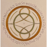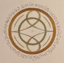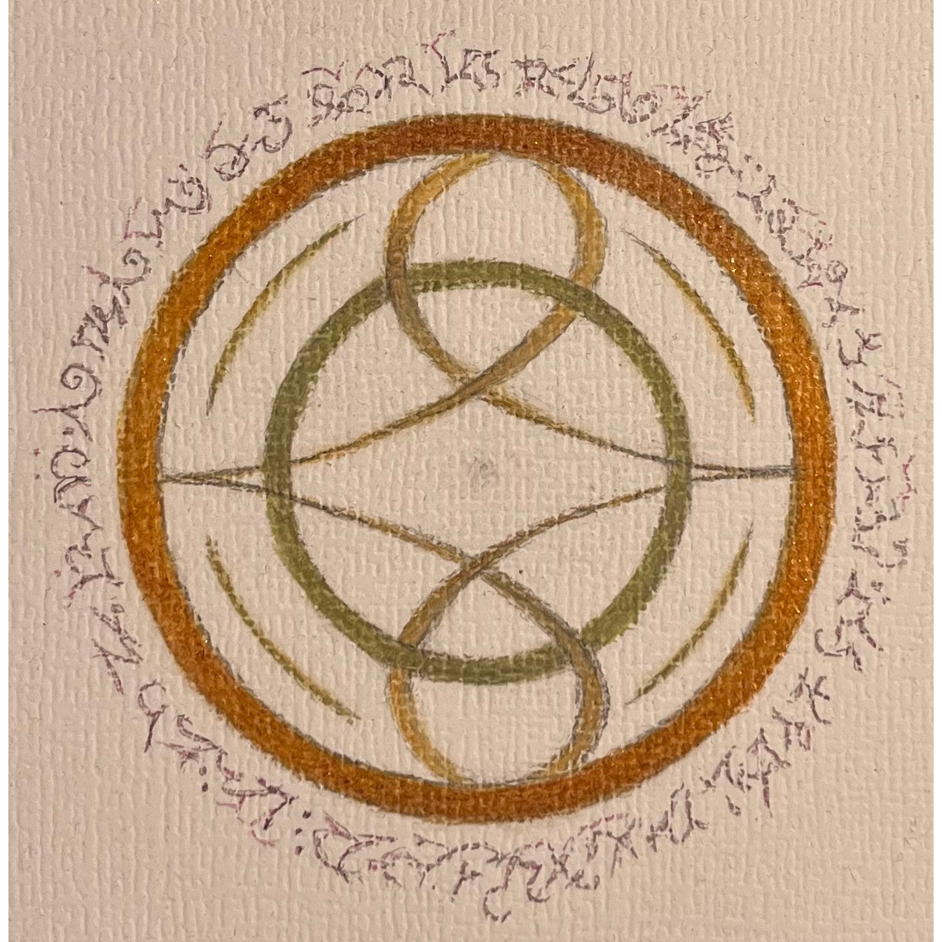 Buiten deze ring heeft Anne lichttaal geschreven. Voor mij voelt dat als een zachte bewaking van de binnenkant van de cirkel, als intenties die niet gelezen hoeven te worden met het hoofd, maar gevoeld mogen worden.